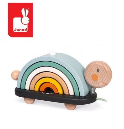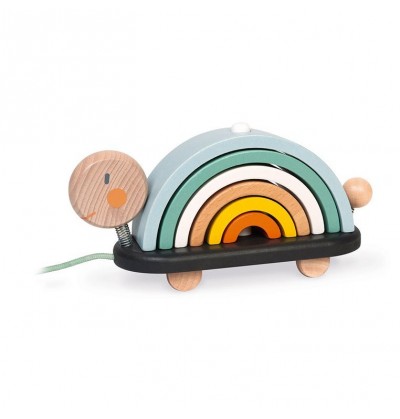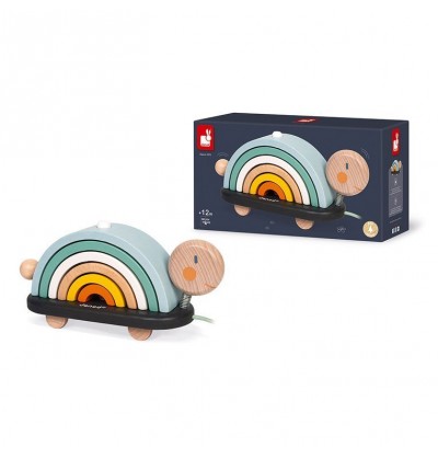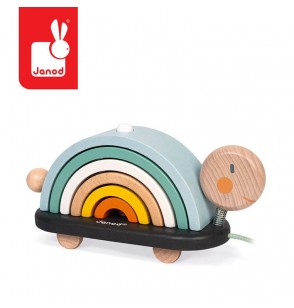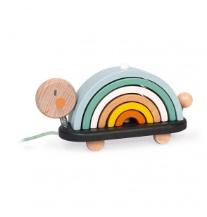 Janod J04405 Drewniany Tęczowy Żółw Do Ciągnięcia
