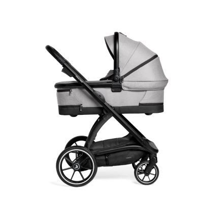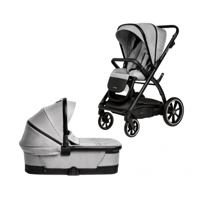 Wózek złożysz jedną ręką wraz ze spacerówką przodem lub tyłem do kierunku jazdy. Składa się do rozmiarów 59 cm x 58 cm x 33 cm i zawsze stoi na kołach