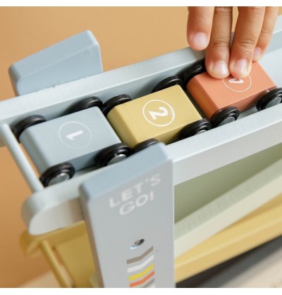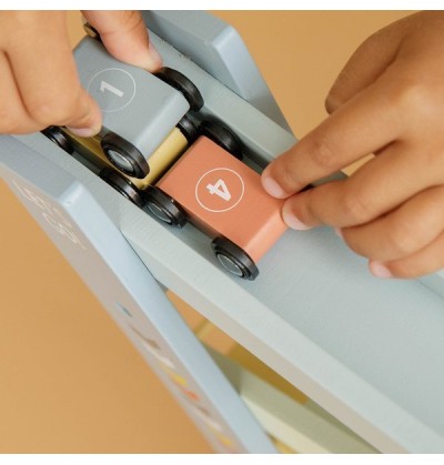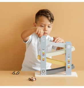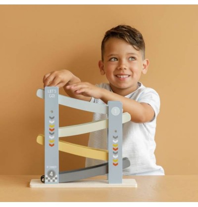 Drewniana zjeżdżalnia dla samochodzików od Little Dutch. Zjeżdżalnia posiada 4 poziomy oraz 4 małe samochodziki. Samochodziki puszczane z góry na dół. Samochodziki-wyścigówki mogą służyć do zabawy osobno. Wykonana z wysokiej jakości drewna, malowana bezpiecznymi farbami na bazie wody. Ładnie zapakowana w karton, doskonale sprawdzi się na prezent.