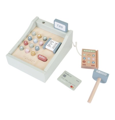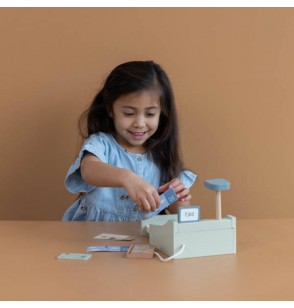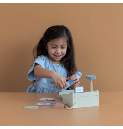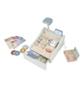 Drewniana kasa to nowa odsłona naszego bestsellera uwielbianego przez dzieci i dorosłych, wykonana z drewna z certyfikatem FSC. Idealnie sprawdzi się podczas zabawy w sklep, wyposażona jest zarówno w terminal, jak i monety i banknoty, które można przechowywać w szufladzie kasowej. Zestaw zwiera wszystko, czego potrzebuje maluch, by bawić się w zakupy z mamą i tatą, przyjaciółmi lub ulubioną lalką.