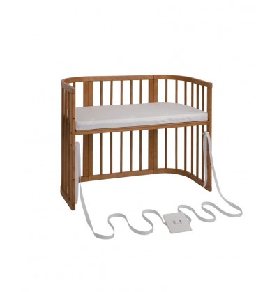 <p>Drewniane, mobilne łóżeczko z kołyską<br /><br />2-częściowy materac w zestawie<br /><br />Regulowana wysokość podłogi</p> <p>Przed Tobą absolutny hit w zakresie wyposażenia pokoju dziecięcego. Oferujemy łóżeczko – kołyskę drewnianą – 5 w 1, na które składa się:<br /><br /></p> <ul style="list-style-type:circle;"> <li>    dostawka,</li> <li>    łóżeczko dostawne,</li> <li>    łóżeczko wolnostojące lub łóżeczko kołyszące (kołyska dodatkowo płatna),</li> <li>    kojec,</li> <li>    stolik.</li> </ul> <p><br />Wymiary zewnętrzne<br /><br /></p> <ul style="list-style-type:circle;"> <li>    Łóżeczko (bez kółek): dł. 97 cm × szer. 70 cm × wys. 75,5 cm</li> <li>    Dostawka: dł. 97 cm × szer. 46 cm</li> <li>    Wysokość kółek: ok. 6 cm.</li> <li>    Regulacja podłogi na 5 poziomach.</li> </ul> <p><br /><strong>Kołyska dziecięca dla dziecka do 3 lat</strong><br /><br />Ten model zaskarbił sobie sympatię wielu rodziców, którzy stali przed wyborem łóżeczka i kołyski dla swojego niemowlęcia. Połączenie tych dwu możliwości wraz z dodatkowymi opcjami w postaci np. dostawki, zaowocowało powstaniem mebla idealnego. Szara kołyska dla niemowlaka to łóżeczko, które koniecznie musisz rozważyć. Kupujesz jeden produkt, a zyskujesz aż 4 dodatkowe rozwiązania! Cenisz sobie uniwersalność? Kołyska i łóżeczko dla dziecka powinna znaleźć się w Twoim koszyku już teraz! <br />Łóżeczka drewniane dla niemowląt od Waldin, czyli wysoka jakość<br /><br />Do stworzenia tego egzemplarza wykorzystaliśmy najlepszej jakości tworzywo, jakim jest certyfikowane drewno bukowe. Przekłada się to nie tylko na większą estetykę, ale przede wszystkim zapewnia wieloletnie użytkowanie. Ten naturalny surowiec jest w pełni bezpieczny dla dziecka, przez co jako rodzic masz pewność, że wybierasz to, co w 100% sprawdzone. Stawiamy na ekologię i polską produkcję – kołyska drewniana dla niemowlaka nie stanowi w tym przypadku wyjątku. Jakość oraz solidne wykonanie to tylko jedne z zalet. Co jeszcze zyskasz, kupując ten model?<br />Od pierwszych dni życia dziecka<br /><br />Jako dostawka mebelek sprawdza się doskonale, niezależnie od tego, na jakim łóżku śpią rodzice – wystarczy przymocować dostawkę specjalnym pasem zabezpieczającym, który otrzymasz w zestawie! Gwarantuje to całej rodzinie bezpieczny i spokojny sen przez całą noc.<br />Do zestawu dołączyliśmy również 2-częściowy materac o wysokości 6 cm, kótry jest w bawełnianym pokrowcu przystosowanym do prania w 40 st. C.<br />Niezwykła uniwersalność łóżeczka-kołyski drewnianej<br /><br />Drewniane kołyski dla niemowląt – u nas modele 5 w 1 – to niesamowite ułatwienie dla każdego rodzica. Możliwość przemiany jednego mebla w dostawkę, kołyskę oraz łóżeczko stanowi idealną opcję dla wszystkich osób, dla których istotna jest wszechstronność.  Kołyska i łóżeczko, a dodatkowo także stoliczek będą wykorzystywane przez naprawdę długi czas – od urodzenia aż do ukończenia przez Twoją pociechę blisko 3 lat. Przez ten czas możesz obniżać poziom, na którym znajduje się materac. Zapewniamy przy tym, że konstrukcja jest niesamowicie bezpieczna dla niemowląt w każdym wieku – już od pierwszej nocy spędzonej w tej konstrukcji. Funkcja kołyski sprawia, że będą miały zapewniony spokój oraz wyciszenie. Z kolei dzięki możliwości dostawki Ty zyskujesz gwarancję, że Twoje dziecko jest blisko Twojego łóżka w nocy. Komfort, jakość i estetyka – wybierz nasz model!</p> <p></p>