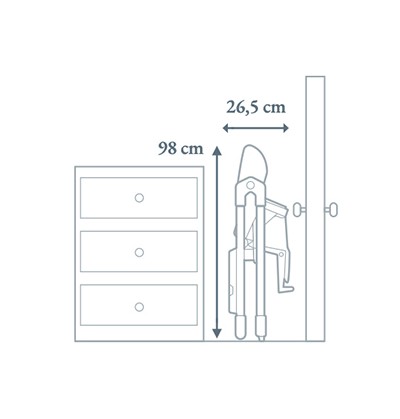 Krzesełko do karmienia My Time zajmuje bardzo mało miejsca i można je łatwo ustawić w bardzo ciasnych przestrzeniach.