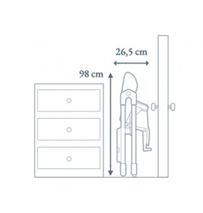 Dzięki swojej konstrukcji łatwo się składa, a także stoi samodzielnie.