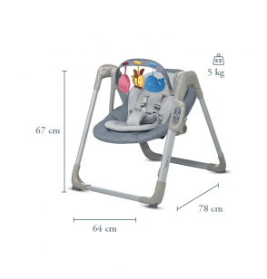 Pierwsza huśtawka Twojego dziecka! Huśtawka Wave jest idealna do relaksu, wspomagania snu i pobudzania rozwoju umysłowego dziecka. Co więcej, zapewnia dziecku maksymalny komfort przez cały czas dzięki dużemu, miękkiemu, rozkładanemu siedzisku.