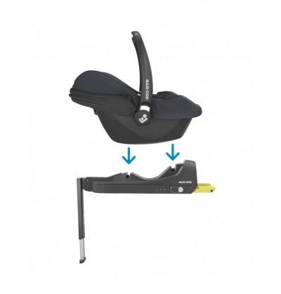 Zaprojektowana specjalnie do fotelików samochodowych dla niemowląt CabrioFix i-Size | Montaż zatrzaskowy fotelika CabrioFix i-Size | Zgodność z normą bezpieczeństwa i-Size, system mocowania ISOFIX | Sygnalizacja prawidłowego zamocowania