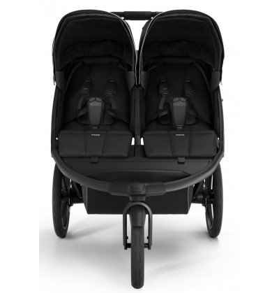 Praktyczność to nie jedyna zaleta tego wózka. Składa się jedną ręką do niewielkich rozmiarów, co bardzo ułatwia przechowywanie i transport. Daszek całkowicie zasłaniający dziecko przy zachowaniu swobodnej wentylacji zapewnia dzieciom komfort w każdej sytuacji, jaka się może przydarzyć w ciągu dnia. Wysokiej klasy rozwiązania, takie jak pompowane opony i duża przestrzeń bagażowa czynią z tego podwójnego wózka na każdy teren idealne akcesorium dla każdej powiększającej się rodziny.