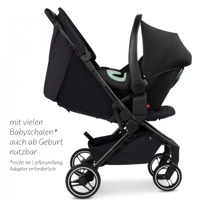 Wózek Ping 3 Trekking oferuje również pełen komfort mamom i tatom. Praktyczny hamulec postojowy znajduje się bezpośrednio przy prawym tylnym kole, co sprawia, że pchanie jest przyjemniejsze dzięki dodatkowej przestrzeni na nogi, a jednocześnie oszczędza wagę i przestrzeń. Sprytne rozwiązanie: dzięki opcjonalnym adapterom możesz łatwo przymocować fotelik samochodowy Tulip do wózka Ping 3 Trekking i używać go jako praktycznego systemu podróżnego już od urodzenia. Uniwersalny system mocowania ABC Design zapewnia bezpieczne mocowanie akcesoriów, takich jak torba do przewijania, uchwyt na kubek czy lampka ABC Design, do wózka jednym kliknięciem.