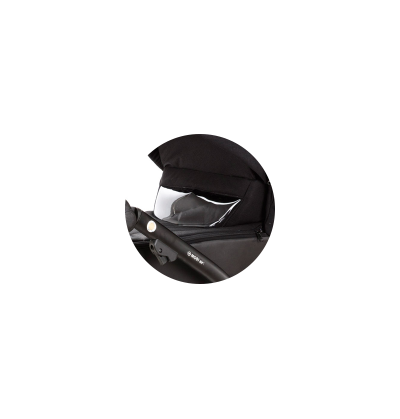 - Budka wersji spacerowej posiada klin zapinany na zamek umożliwiający przedłużenie budki o duży panel tkaninowy w razie potrzeby – zarówno przed słońcem jak i wiatrem. Co więcej, w budce znajduje się także klapka z poręcznym okienkiem wentylacyjnym