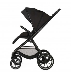 - Spacerówka posiada 3-stopniową regulację wysokości oparcia za pomocą wygodnego przycisku, który obsłużysz jedną ręką