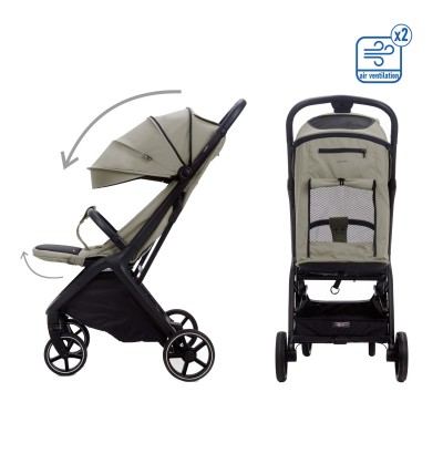 • W tylnej części wózka znajduje się poręczna kieszonka na wszelkie niezbędne drobiazgi zapinana na zamek oraz duże, odpinane na zamek okno wentylacyjne.