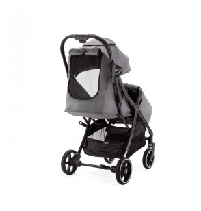 - W tylnej części wózka znajduje się poręczna kieszonka na wszelkie niezbędne drobiazgi oraz duże, odpinane na zamek okno wentylacyjne