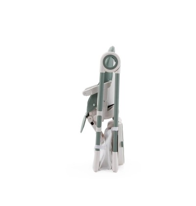 - Składanie YUNO jest bardzo proste – zrobisz to jednym ruchem! Jeśli chcesz złożyć krzesełko, wtedy tackę możesz zdjąć i zaczepić z tyłu krzesełka na specjalnych uchwytach lub uchylić ją i złożyć krzesełko wraz z tacką