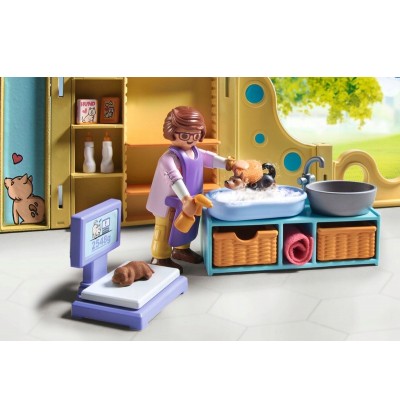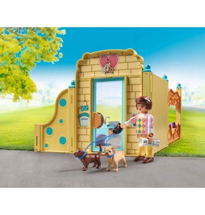 W Domu dla szczeniaków PLAYMOBIL każdy piesek jest rozpieszczany! Od mycia i pielęgnacji po ważenie i karmienie, w tym domku nie zabraknie niczego. Szczenięta mogą drzemać w przytulnych legowiskach lub odkrywać otoczenie, a dołączona podwójna smycz zapewnia długie radosne spacery.