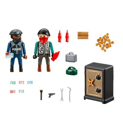 PLAYMOBIL Starter Pack Safecracker to idealna zabawka dla kreatywnych dzieci, które chcą zanurzyć się w ekscytującym świecie policji i przestępców. Dzięki tym ekscytującym figurkom mali poszukiwacze przygód mogą tworzyć i odgrywać własne historie, odkrywając tajemnice sejfu.