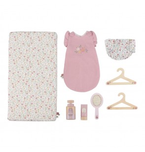 W zestawie znajdują się akcesoria, które umożliwiają kreatywną zabawę i odgrywanie codziennych rytuałów dorosłych – przewijanie, czesanie włosów czy organizowanie garderoby lalki.