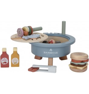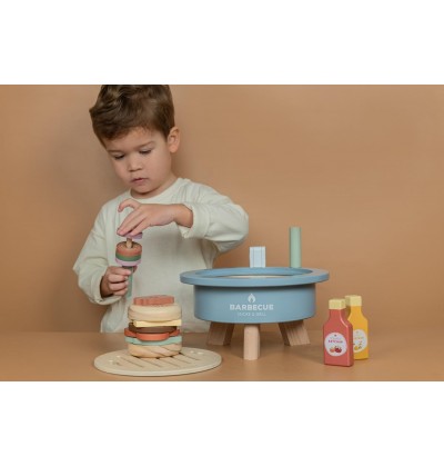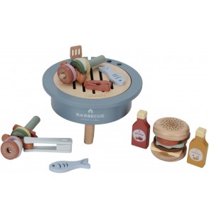 Ten 34-częściowy zestaw do grillowania z drewna zawiera sztućce do grilla, bułkę hamburgerową i zdejmowany grill. Ponieważ wygląda jak prawdziwy grill, Twoje dziecko może w pełni odtworzyć proces grillowania.