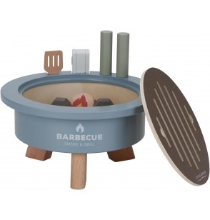Co jest do jedzenia, mały kucharz? Ten zestaw do grillowania zapewnia wszystko, czego potrzebujesz, aby stworzyć prawdziwą i przytulną imprezę przy grillu. Zawiera szczypce do grilla, szpatułkę i dwa szpikulce. Podnieś ruszt do grillowania i napełnij go kawałkami węgla drzewnego, aby podgrzać grill.