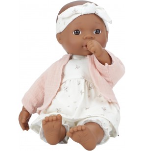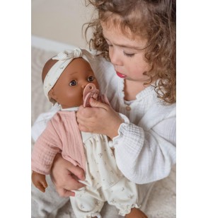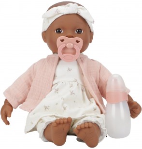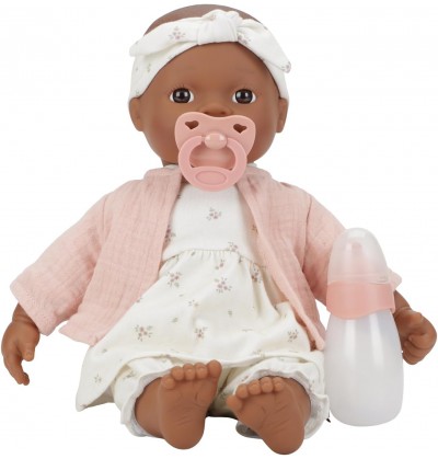 - Lalka ma miękkie ciało i jest sprzedawana z ubrankami dla lalek, smoczkiem i butelką do picia