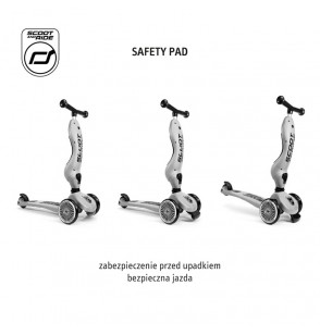 Hulajnoga dla dzieci Highwaykick 1 Lifestyle oferuje dodatkowe zabezpieczenie w postaci podkładki safety pad, znajdującej się z przodu pojazdu i zapobiegającej jego niekontrolowanemu przewróceniu się. Jest to wyjątkowa funkcja, która zwiększa bezpieczeństwo, szczególnie na nierównych nawierzchniach.