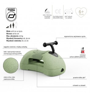 Płynna jazda – po odwróceniu podstawy, My First zamienia się w jeździk Scoot and Ride. Na cichych, nisko osadzonych kółkach pojazd porusza się płynnie, jest bezpieczny dla dziecka i nie pozostawia śladów na podłodze.