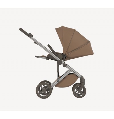 Gondola EPP z naturalnymi tkaninami i materacem Sorona tworzą bezpieczną i wygodną przestrzeń dla dziecka, podczas gdy koła z nową technologią bezobsługową zapewniają zawsze płynną jazdę.