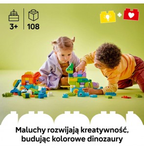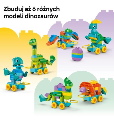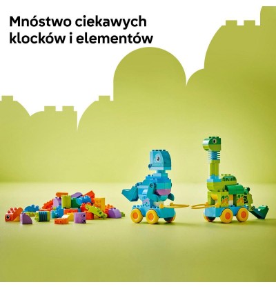 - Zabawka zapewniająca wiele godzin kreatywnej zabawy — wprowadź żywe kolory i nieograniczoną kreatywność do zabawy dzięki zestawowi LEGO® DUPLO® Town 3 w 1 Dinozaury na kółkach
