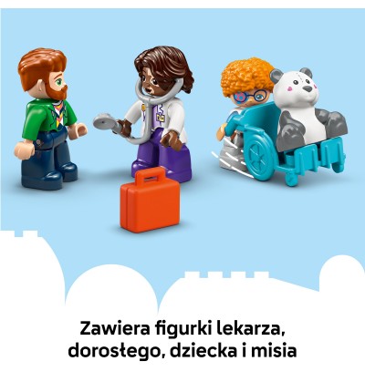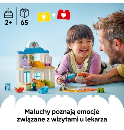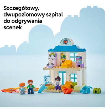 - Zabawka ze szpitalem do zbudowania — dzięki zestawowi LEGO® DUPLO® Moje miasteczko Pierwszy raz: Wizyta u lekarza dzieci uczą się wyrażać uczucia i odgrywać scenki z życia codziennego