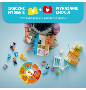 To świetny prezent dla maluchów, które lubią zabawki pomagające wyrażać emocje. Dołączone koło do zabawy pozwala rodzicom i ich pociechom odkrywać różne emocje chłopca, aby zachęcić dzieci do wyrażania swoich uczuć związanych z wizytą u lekarza. Zabawki LEGO DUPLO rozwijają społeczno-emocjonalne umiejętności i są pełne angażujących historii, bohaterów dnia codziennego i różnorodnych postaci, które pomagają maluchom zrozumieć otaczający je świat.