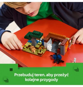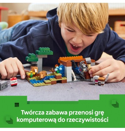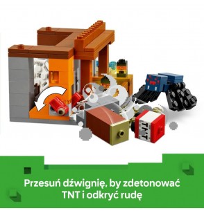 Osadzony w biomie sawanny zestaw zawiera kopalnię z funkcją TNT sterowaną dźwignią, która wysadza kawałek terenu, odsłaniając cenną rudę. W kopalni znajduje się pająk jaskiniowy i wilk, a także dwa pancerniki, których łuski można wykorzystać do tworzenia wilczej zbroi. Z boku kopalni znajduje się mała rzeczka i wodospad lawy. Zestaw można z łatwością przebudować, aby przeżyć nowe przygody. Dodatkową cyfrową zabawę zapewnia aplikacja LEGO Builder, która pozwala dzieciom powiększać i obracać modele w 3D na urządzeniu.