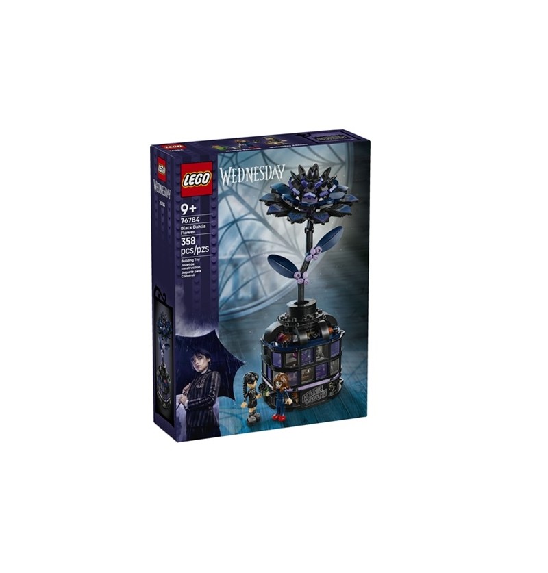 Elegancki zestaw LEGO® Wednesday Kwiat czarnej dalii (76784) jest idealny dla fanów botaniki i miłośników designu w wieku od dziewięciu lat. Ten ozdobny model zawiera czarną roślinę dalii z liśćmi i jasnofioletowymi pąkami oraz wazon przypominający miniaturową szklarnię. Po zbudowaniu dzieci wyjmują kwiat dalii, aby otworzyć wazon i odkryć klasę, w której znajdują się wyjmowane biurka, stołek i inne akcesoria do odgrywania historii. Zestaw zawiera również minilaleczki Wednesday Addams i profesor Marilyn Thornhill, które umożliwiają odgrywanie ról.