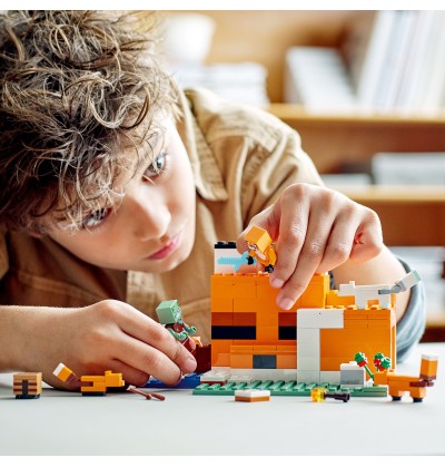 - Wesoła rozrywka — model LEGO® Minecraft® Siedlisko lisów (21178) zawiera mnóstwo postaci, akcesoriów i funkcji, które zainspirują dzieci do niekończącej się kreatywnej zabawy