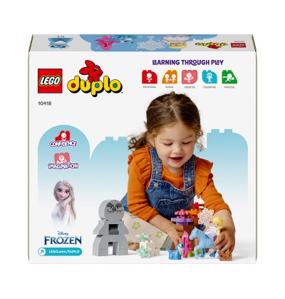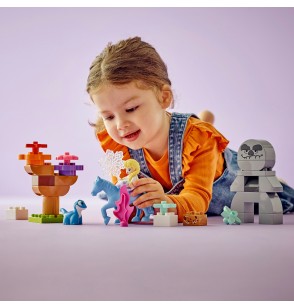 - Zestaw LEGO® DUPLO® do odgrywania ról dla przedszkolaków — maluchy rozwijają umiejętność wyrażania siebie, wyobrażając sobie, że są Elzą lub Brunim oraz koniem wodnym Nokkiem, którzy przemierzają las, aby zaprzyjaźnić się ze skalnym kolosem