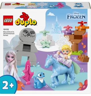 Pozwól dwulatkom i starszym dzieciom udać się w niesamowitą podróż podczas zabawy zestawem LEGO® DUPLO® | Disney Elza i Bruni w Zaczarowanym Lesie (10418). Przedszkolaki wybiorą się do Zaczarowanego Lasu w towarzystwie znanych postaci z filmu Kraina lodu 2 Disneya: Elzy, salamandry Bruniego oraz Nokka, magicznego wodnego konia.