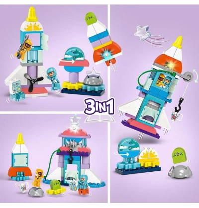 - Prom kosmiczny do zbudowania i przebudowywania — rozwiń pasję małego astronauty za pomocą wielofunkcyjnego zestawu LEGO® DUPLO® Przygoda w promie kosmicznym 3 w 1 dla dzieci w wieku od trzech lat