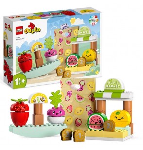 Zabawki LEGO DUPLO umożliwiają przedszkolakom nieograniczoną zabawę, wyrażanie siebie i radosną naukę. Ten zestaw zachęca do interaktywnej zabawy dzieci i dorosłych, którzy mogą odgrywać rolę sprzedawcy owoców i warzyw lub klienta. Zestawy DUPLO pozwalają rodzicom i małym dzieciom razem uczestniczyć w ważnych etapach ich rozwoju podczas wspólnego budowania i zabawy.