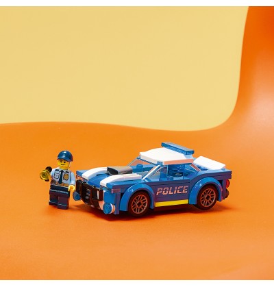 - Zawartość opakowania — w środku jest wszystko, czego dzieci potrzebują do zbudowania zabawkowego radiowozu z miejscem na dołączoną minifigurkę policjanta
