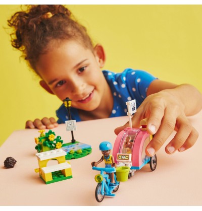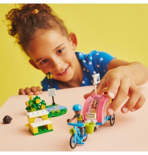 Dzięki zestawowi LEGO® Friends Rower do ratowania psów (41738) wielbiciele zwierząt w wieku od sześciu lat mogą odgrywać niezliczone role. Razem z liderką misji, Aliyą, i jej młodszą przyjaciółką, Victorią, będą szukać szczeniaka w mieście Heartlake. Dzieci będą zachwycone, mogąc wyśledzić zwierzaka po kupach i śladach łap! Ta świetna zabawka obejmuje rower do ratowania psów i odczepianą przyczepkę, która otwiera się z przodu i z tyłu. W zestawie jest też sceneria parku z ławką i krzakami, które się podnoszą, odsłaniając zagubionego pieska, a także akcesoria.