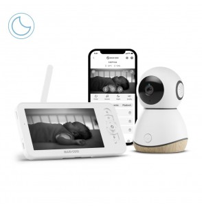 - Zdalne sterowanie obrotem, pochyleniem i powiększeniem: za pomocą 5-calowego ekranu rodzica lub aplikacji możesz zdalnie sterować obrotem, pochylaniem i powiększeniem, by dziecko było zawsze dobrze widoczne.