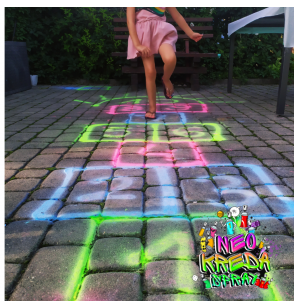 Kreda w sprayu znakomicie nadaje się do kreatywnych działań. Pomalujesz nią takie powierzchnie jak szkło, asfalt, drewno, kamienie czy trawa. NEO KREDA daje taki sam efekt jak farba w sprayu, ale w odróżnieniu od niej, jest zmywalna wodą. Należy wziąć pod uwagę, że wykonane nią malunki na zewnątrz pomieszczeń, zostaną także usunięte wraz z deszczem lub innym opadem atmosferycznym.