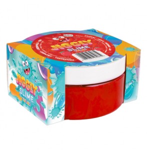 To gotowa do zabawy masa plastyczna typu water slime w kolorze czerwonym. Można ją ugniatać, przekładać z ręki do ręki, rozciągać, a nawet dmuchać z niej bańki. Jiggly Slime jest niezwykle elastyczny, a do tego ma wyjątkowy truskawkowy zapach! Jego konsystencja przypomina galaretkę, jednak w odróżnieniu od niej slime nie rozpada się i nie klei się do rąk. Zabawa slimem pomaga dzieciom oswoić się z lepkimi konsystencjami i dostarcza im wrażeń sensorycznych. Jiggly Slime znajduje się w zamykanym, szczelnym pudełku.