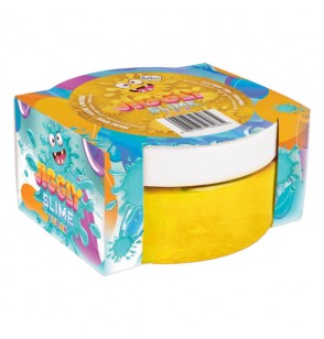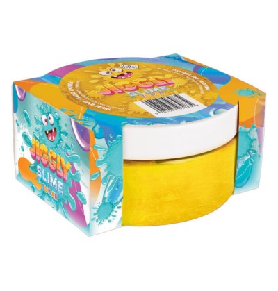 To gotowa do zabawy masa plastyczna typu water slime w kolorze złotym. Można ją ugniatać, przekładać z ręki do ręki, rozciągać, a nawet dmuchać z niej bańki. Jiggly Slime jest niezwykle elastyczny, a do tego ma wyjątkowy perłowy połysk! Jego konsystencja przypomina galaretkę, jednak w odróżnieniu od niej slime nie rozpada się i nie klei się do rąk. Zabawa slimem pomaga dzieciom oswoić się z lepkimi konsystencjami i dostarcza im wrażeń sensorycznych. Jiggly Slime znajduje się w zamykanym, szczelnym pudełku.