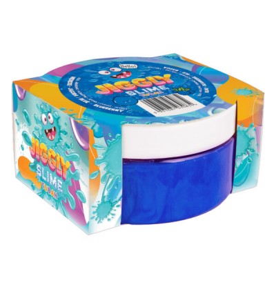To gotowa do zabawy masa plastyczna typu water slime w kolorze niebieskim. Można ją ugniatać, przekładać z ręki do ręki, rozciągać, a nawet dmuchać z niej bańki. Jiggly Slime jest niezwykle elastyczny, a do tego ma wyjątkowy jagodowy zapach! Jego konsystencja przypomina galaretkę, jednak w odróżnieniu od niej slime nie rozpada się i nie klei się do rąk. Zabawa slimem pomaga dzieciom oswoić się z lepkimi konsystencjami i dostarcza im wrażeń sensorycznych. Jiggly Slime znajduje się w zamykanym, szczelnym pudełku.