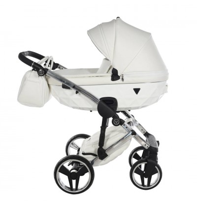 JUNAMA® Fluo Individual to połączenie nowoczesnego designu, najwyższej jakości materiałów i innowacyjnych rozwiązań, które zapewnią wygodę zarówno dziecku, jak i rodzicom. Charakterystyczny, geometryczny kształt gondoli w połączeniu z efektownymi detalami nadaje wózkowi wyjątkowego charakteru.