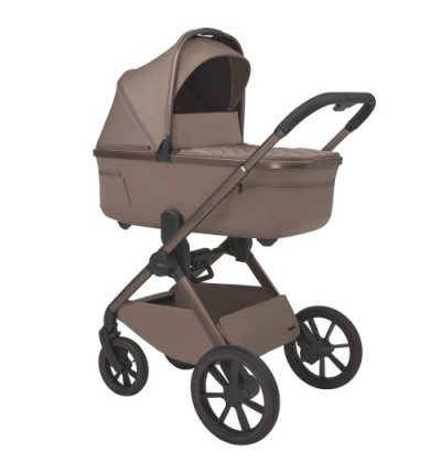 Wózek 2w1, który prowadzi się wyjątkowo płynnie dzięki lekkiej ramie, dużym żelowym kołom, wspaniałej amortyzacji oraz stabilizatorowi drgań. Ultralekka gondola (3,4 kg) ułatwia codzienne przenoszenie, a teleskopowa prowadnica z 5-stopniową regulacją pozwala dopasować wózek do wzrostu rodzica. Spacerówkę wyróżniają podwójna wentylacja, regulowane oparcie, budka i podnóżek oraz możliwość składania przodem lub tyłem – jedną ręką. Obszerny, płynnie otwierany kosz zapewnia szybki dostęp do najpotrzebniejszych rzeczy.