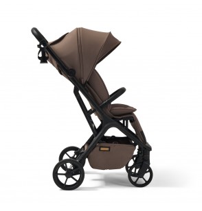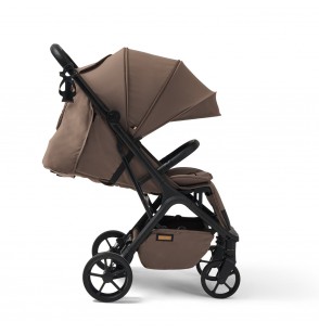 Duże, innowacyjne koła PU z amortyzacją gwarantują komfortowy spacer po każdym terenie. Rączka wózka wykonana jest z przyjemnej w dotyku perforowanej skóry, a pojemny kosz na zakupy pomieści wszystkie niezbędne podczas spaceru rzeczy.