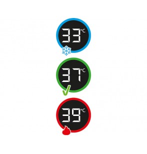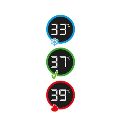 • Wskaźnik koloru pozwala sprawdzić, czy temperatura jest bezpieczna i komfortowa dla Twojego dziecka. Kolor niebieski oznacza zimno, kolor czerwony oznacza gorąco, a kolor zielony oznacza, że jest idealnie (35–38°C).