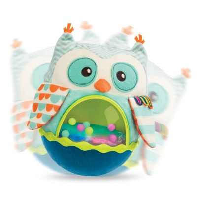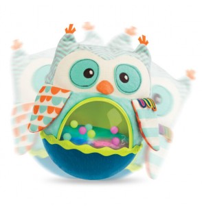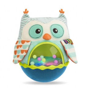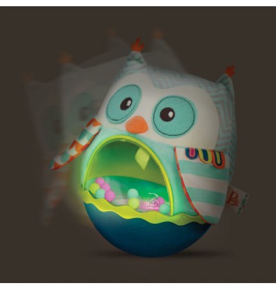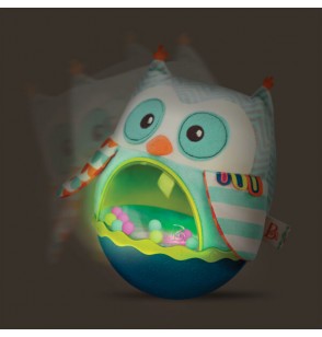 Wańka-wstańka w postaci sensorycznej sowy z muzyką i światłami. Sowa niestrudzenie się kołysze – wystarczy ją lekko popchnąć – i nigdy się nie przewraca. Dodatkowo ma wgrane sympatyczne melodie, a jej brzuszek to miejsce, w którym odbywa się widowiskowy pokaz świetlny z kolorowymi kuleczkami. Zabawka idealna dla niemowląt leżących na brzuszku i dla maluszków, które zaczynają raczkować. Doskonale stymuluje i rozwija koordynację.