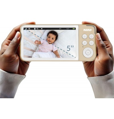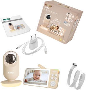Neno Vedo Cream to nowoczesna elektroniczna niania z 5-calowym ekranem i obrotową kamerą, która zapewnia niezawodny podgląd dziecka zarówno w dzień, jak i w nocy. Dzięki funkcjom takim jak tryb nocny, VOX, dwukierunkowa komunikacja i czujnik temperatury, urządzenie wspiera rodziców w codziennej opiece, zapewniając spokój i bezpieczeństwo. Stylowy design i możliwość odtwarzania kołysanek sprawiają, że to nie tylko praktyczne, ale i estetyczne rozwiązanie do każdego dziecięcego pokoju.